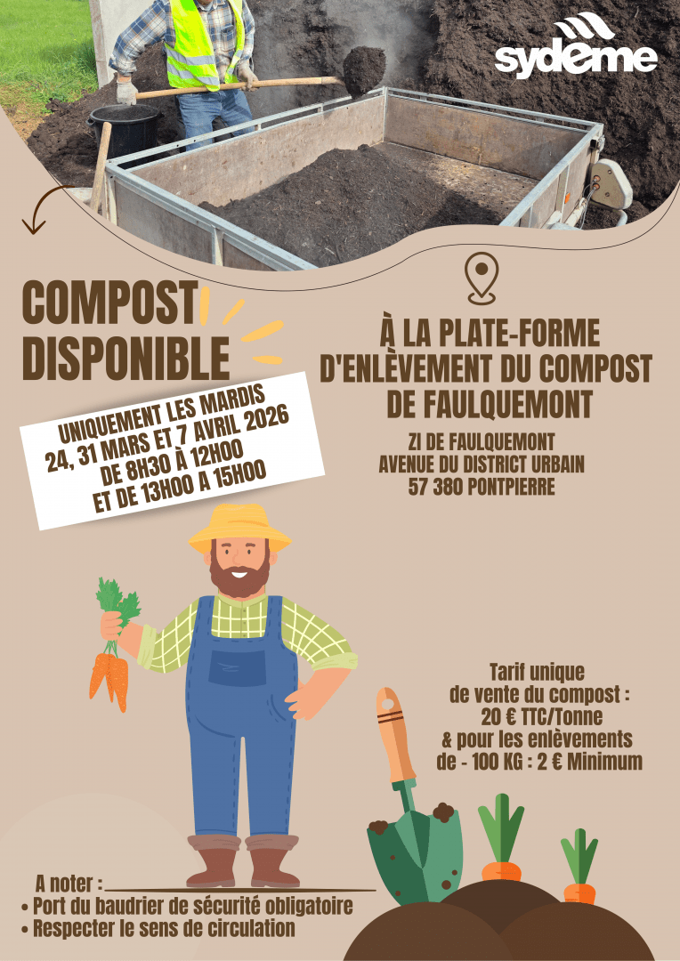 Comme chaque printemps, la plate-forme d'enlèvement du compost de Faulquemont ouvre exceptionnellement ses portes au public pour plusieurs journées dédiées à l'enlèvement de compost.